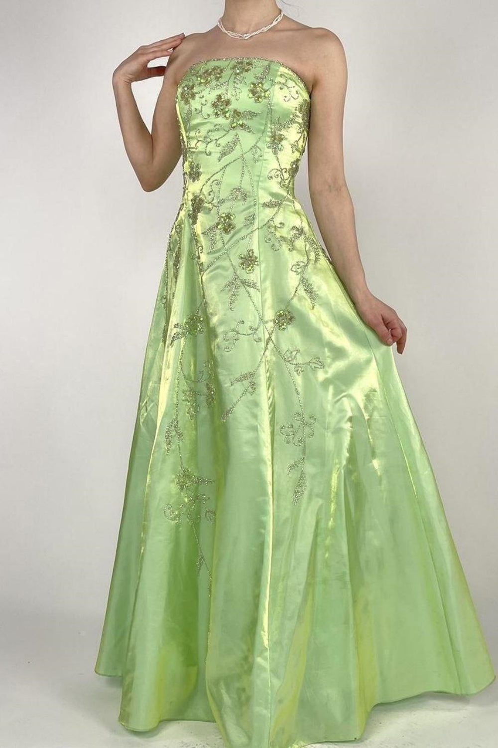 NiceVestidos-Green exquisite beaded long satin fairy gown ball gown y2k vintage dress nv5441