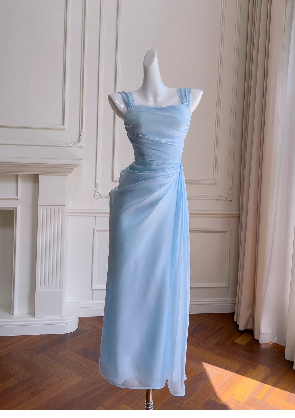 NiceVestidos-Homecoming Dress Blue Suspender Design Waist Long French Retro Summer Popular Dress For Women nv5557