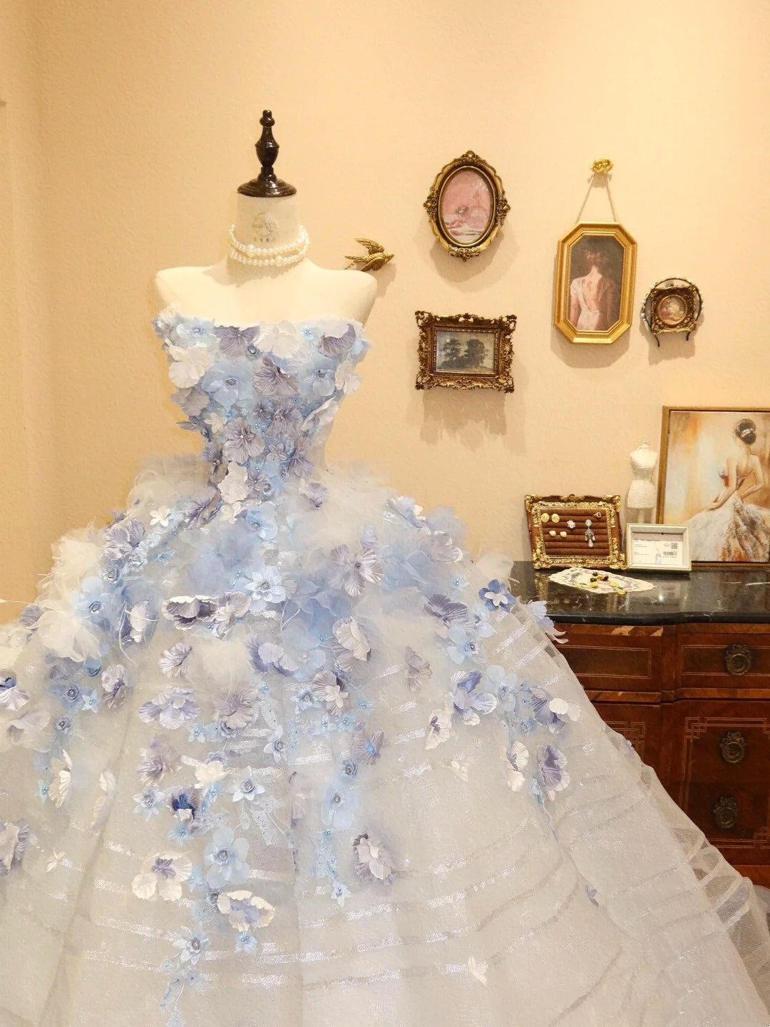 NiceVestidos--Romantic Bridal Tulle Floral Gown, Long Sleeveless Strapless Wedding Dress NV5823