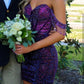 Purple shiny fashion off-shoulder short sequin homecoming dress prom evening dress party dress nv1245