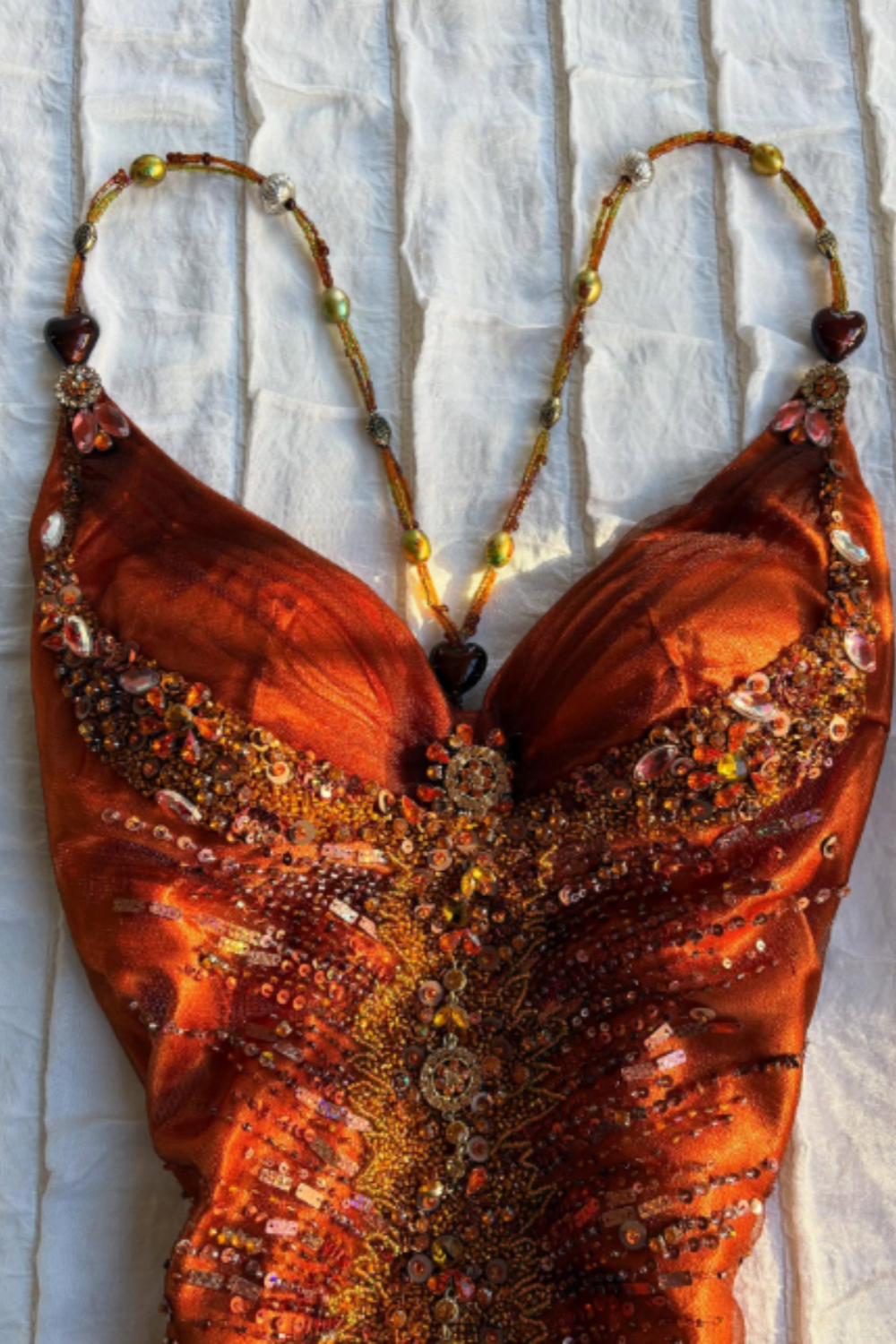 Orange fairy fashion chiffon long exquisite beaded prom dress party dress nv5399