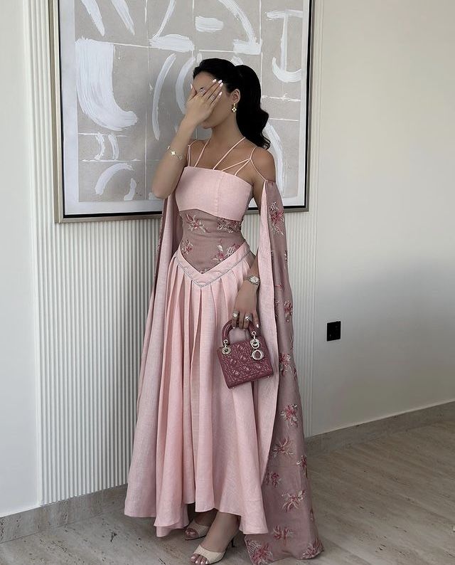 Pink Vintage Exquisite Floral Strap Long Tulle Princess Ball Gown Evening Dress nv3311