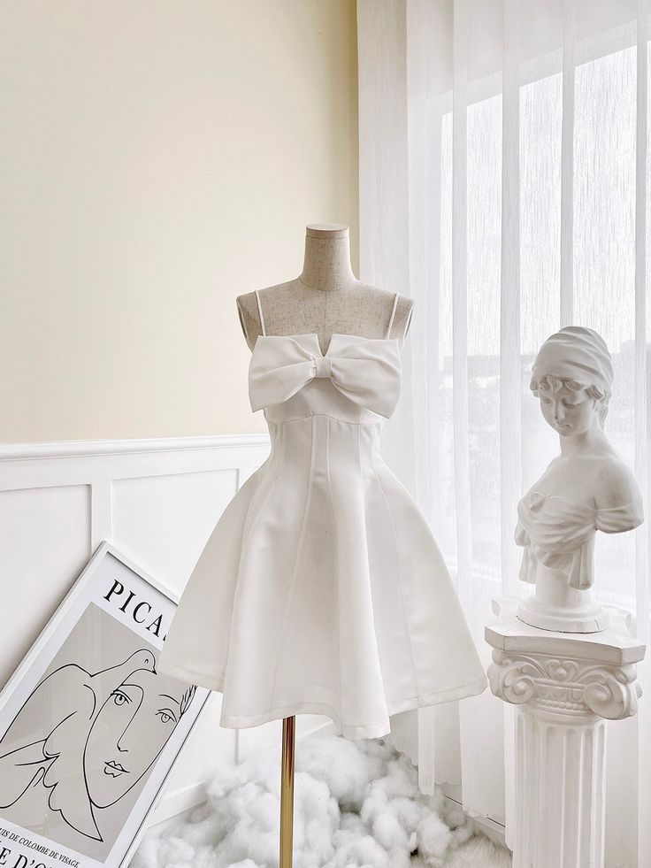 Pink/White Short Fashion Spaghetti Strap Bow Homecoming Dress Party Dress nv3009