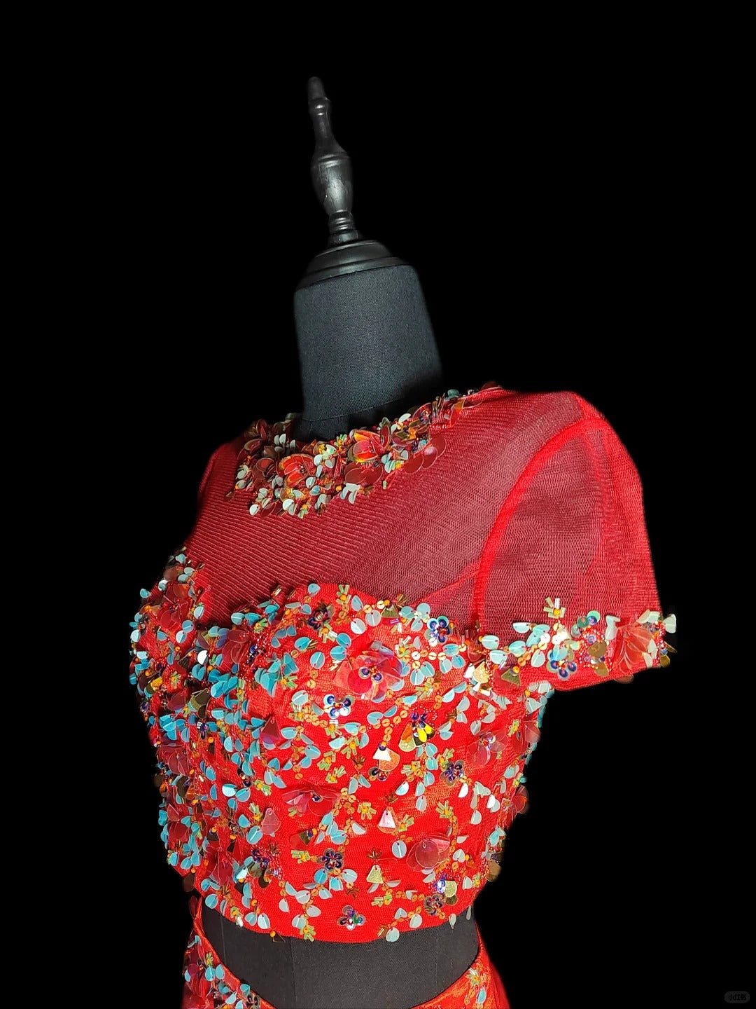 Red Gorgeous Vintage Elegant Exquisite Beaded Short Sleeve Long Mermaid Mermaid Dress Satin Tulle Chiffon Ball Gown Evening Dress Party Dress Wedding Dress Prom Dress nv3962
