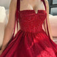Red shiny sequins spaghetti straps bow long dress long ball gown evening dress nv2732