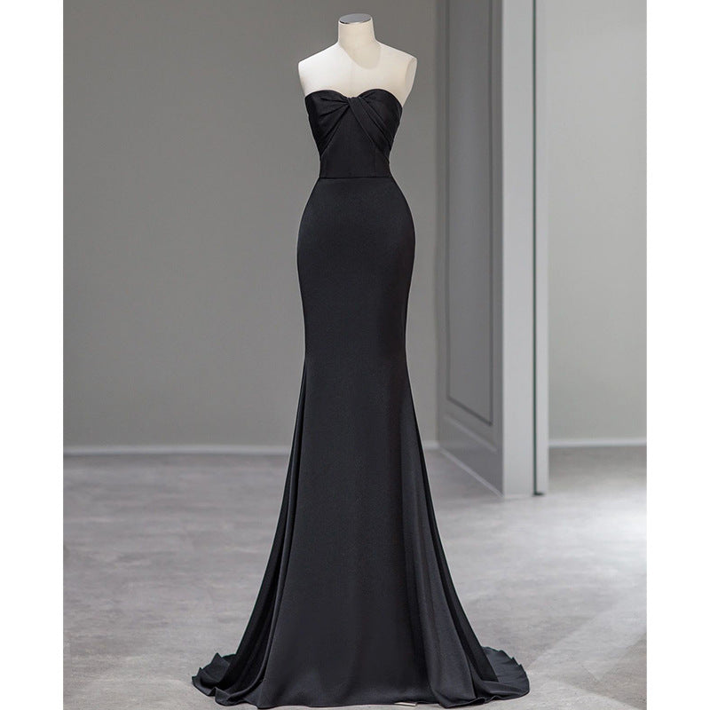 Simple black off-shoulder evening dress vintage dress nv1705