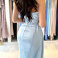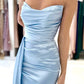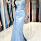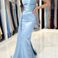Sky Blue Strapless Pleat Prom Dress Mermaid With Slit Ruffles nv1631