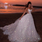 White shiny elegant spaghetti strap A-line long sequined ball gown evening dress nv1059
