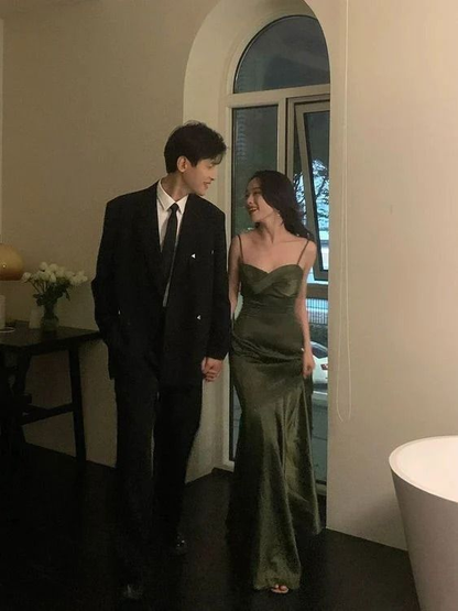 Spaghetti Straps Satin Dark Green Long Prom Dress nv1243