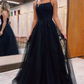 Black A-Line Tulle Long Prom Dress with Lace nv658