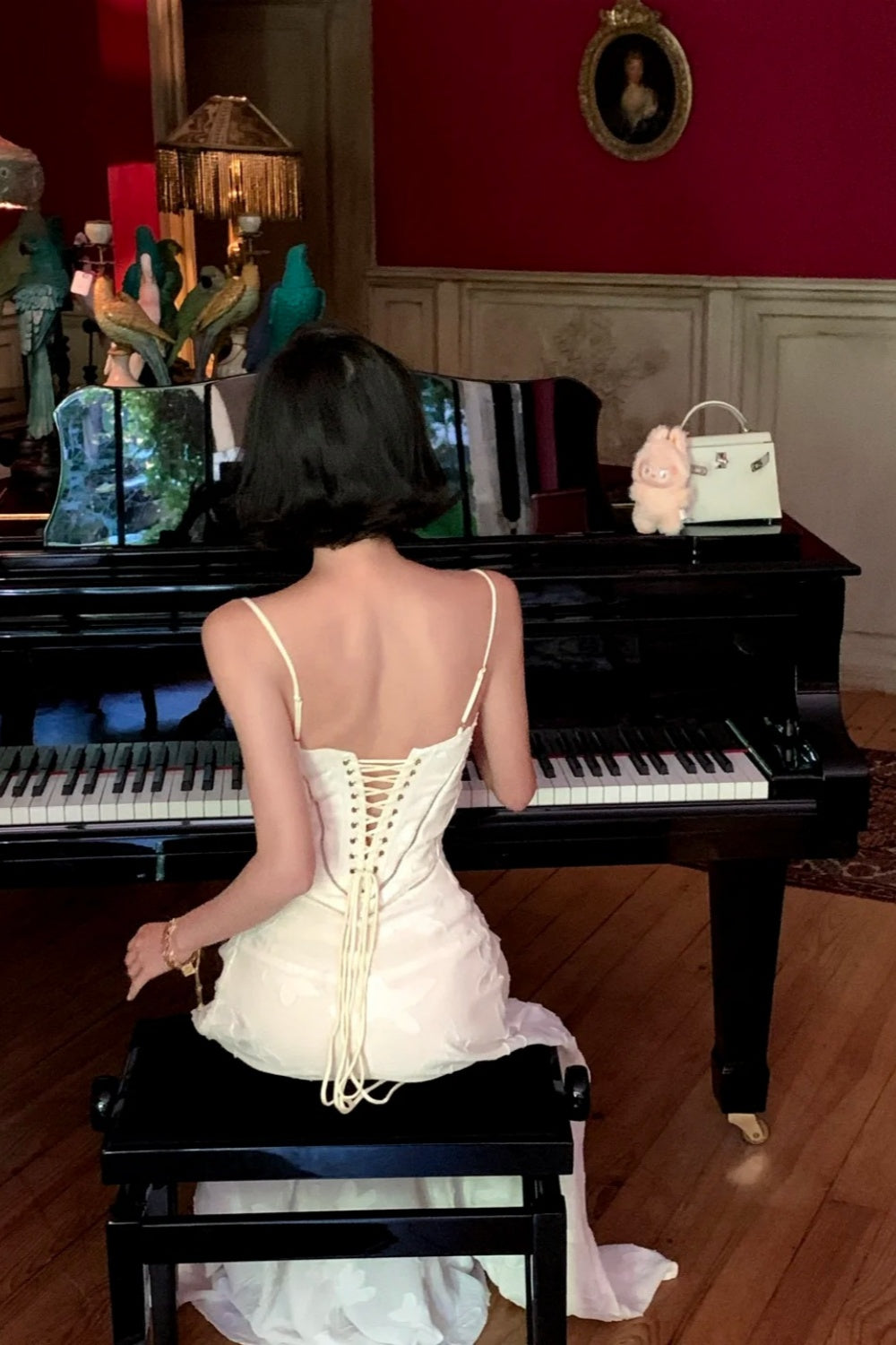 White Embellished Embroidery Gown: Thin Strap Backless, Flowy Chiffon, High-end Date Evening Gown NV6405