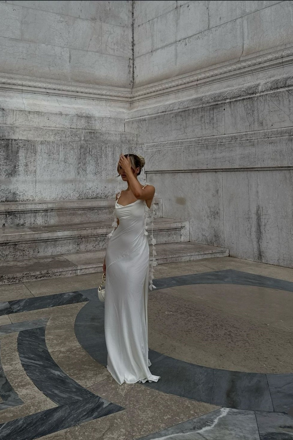 White Fashion Elegant Lace Long Satin Prom Dress Evening Dress Wedding Guest Party Dress nv4808
